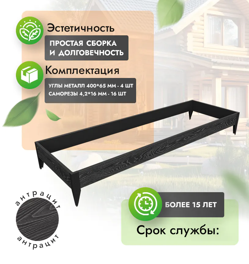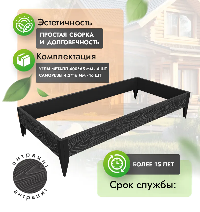• Комплект грядок ДПК прослужит минимум 15 лет даже в самых агрессивных условиях.